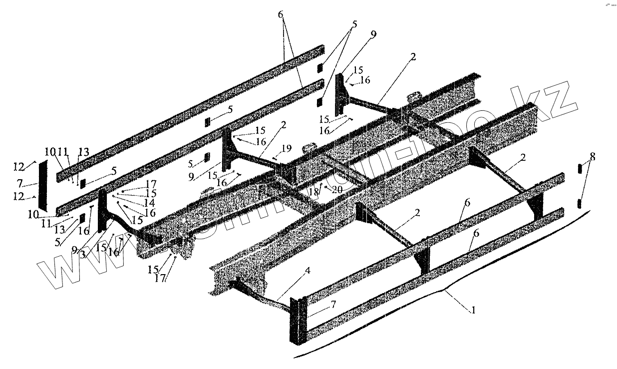 Каталог запасных частей к технике: МАЗ-5337 (2005). Установка бокового ограждения 630308-2800040