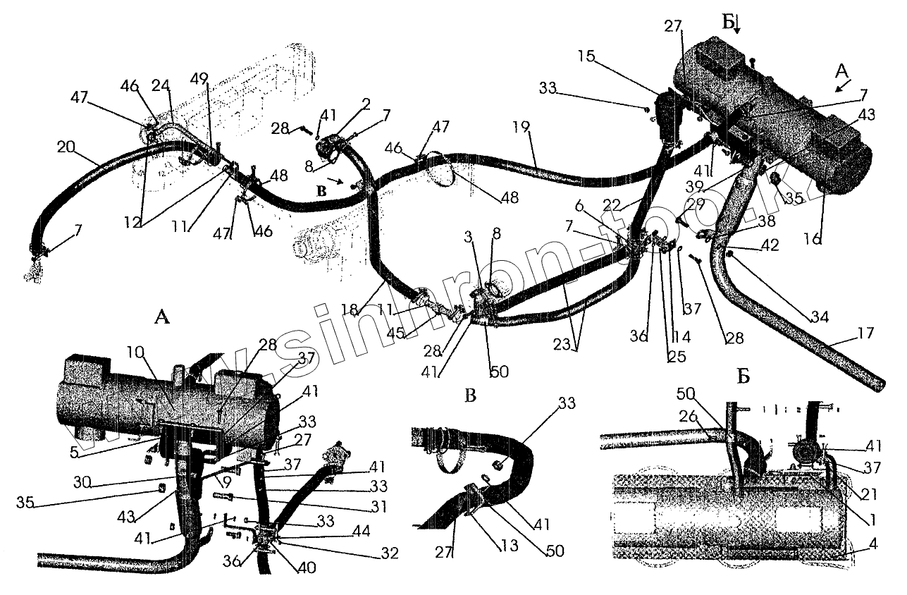 Каталог запасных частей к технике: МАЗ-5337 (2005). Установка подогревателя