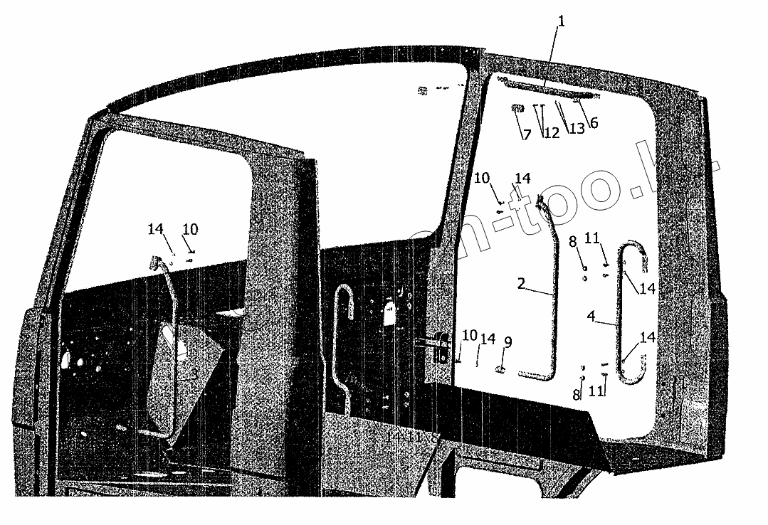 Каталог запасных частей к технике: МАЗ-5337 (2005). Установка поручней в кабине