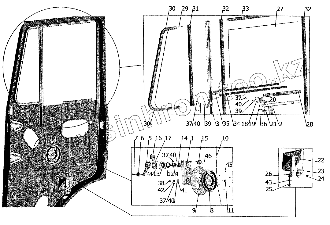Каталог запасных частей к технике: МАЗ-5337 (2005). Установка стеклоподъемника и ручки стеклоподъемника