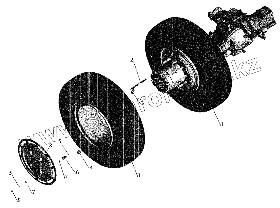 Каталог запасных частей к технике: МАЗ-5337 (2005). Установка задних колес 54321-3100002-020