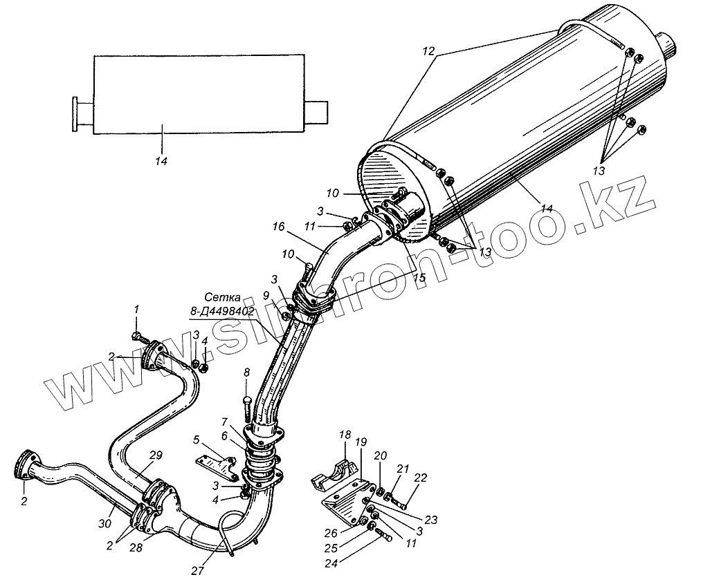 Каталог запасных частей к технике: МАЗ-5429. Глушитель МАЗ-509А