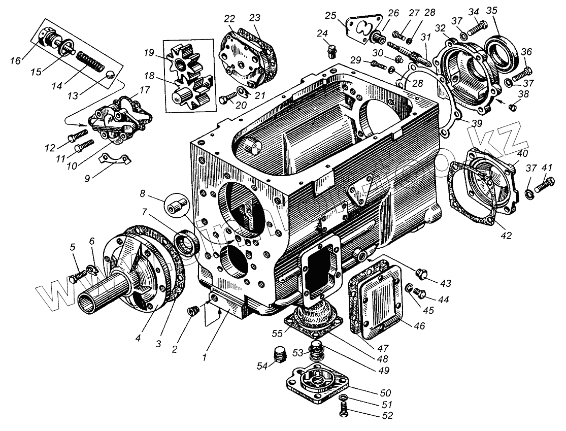 Каталог запасных частей к технике: МАЗ-5429. Картер и насос масляный коробки передач