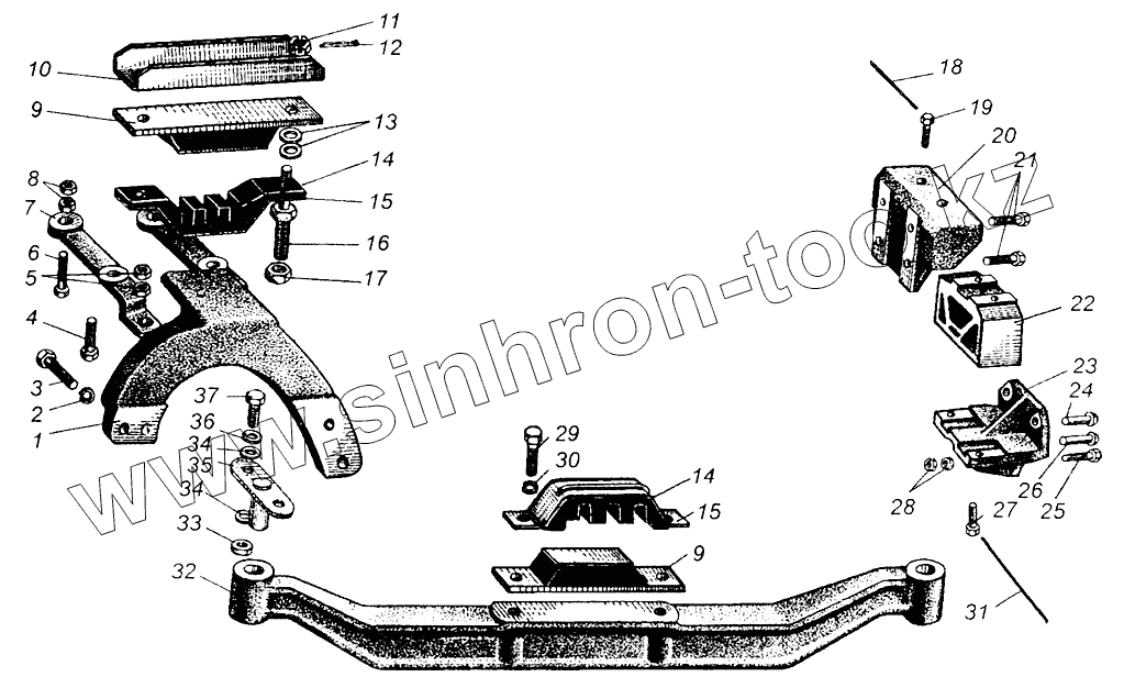 Каталог запасных частей к технике: МАЗ-5429. Крепление силового агрегата