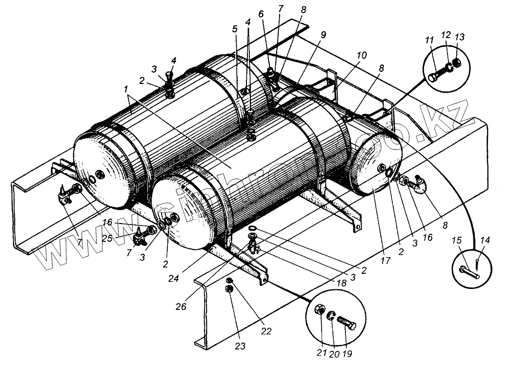 Каталог запасных частей к технике: МАЗ-5429. Крепление воздушных баллонов МАЗ-5549