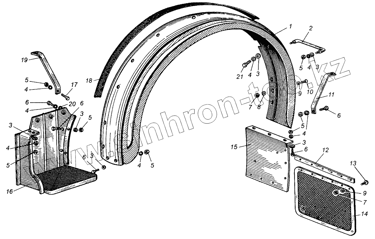 Каталог запасных частей к технике: МАЗ-5429. Крыло переднее и подножка