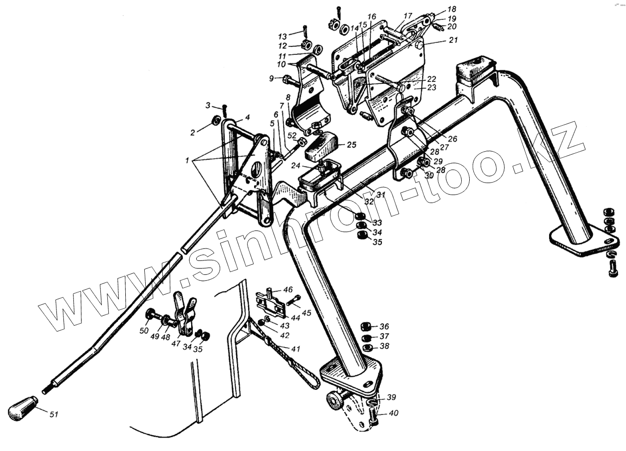 Каталог запасных частей к технике: МАЗ-5429. Механизм кабины запорный