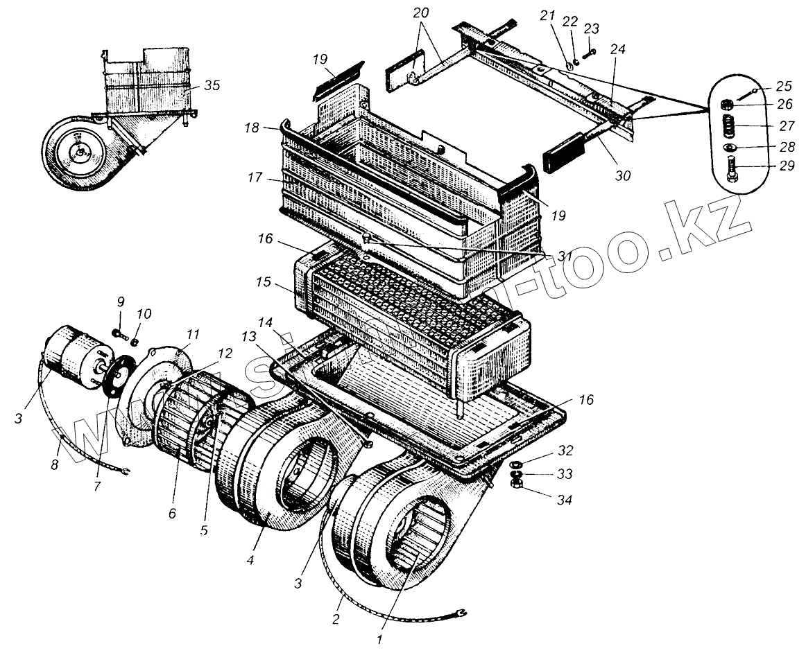 Каталог запасных частей к технике: МАЗ-5429. Отопитель кабины МАЗ-504В