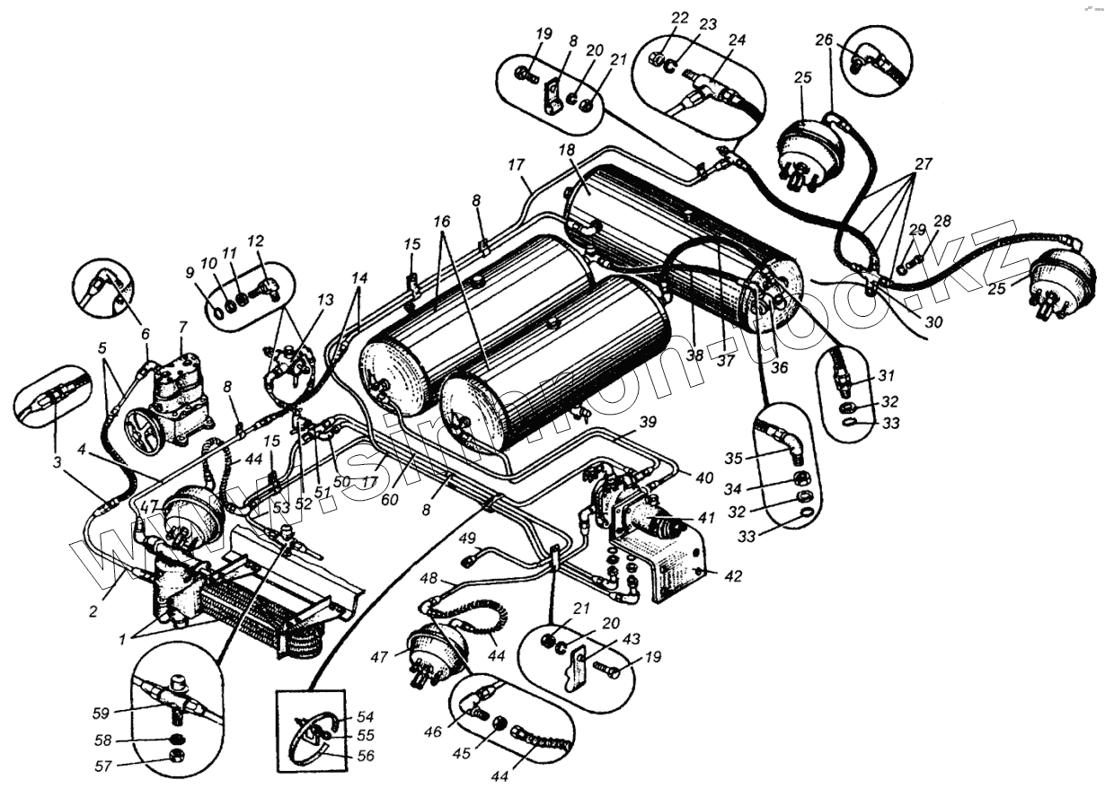 Каталог запасных частей к технике: МАЗ-5429. Привод пневматический тормозов МАЗ-5549