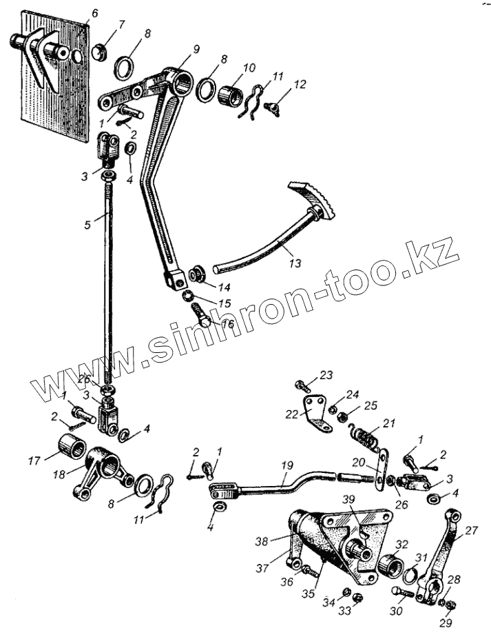 Каталог запасных частей к технике: МАЗ-5429. Привод выключения сцепления