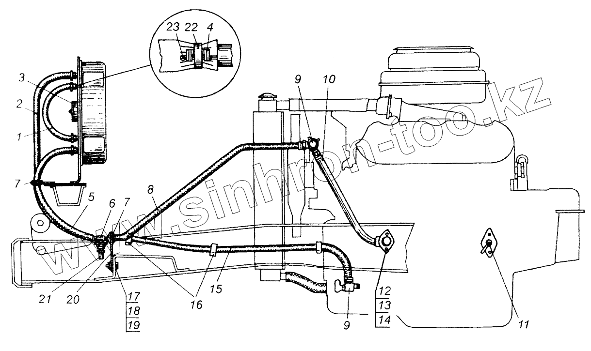 Каталог запасных частей к технике: МАЗ-5429. Схема вентиляции и отопления кабины