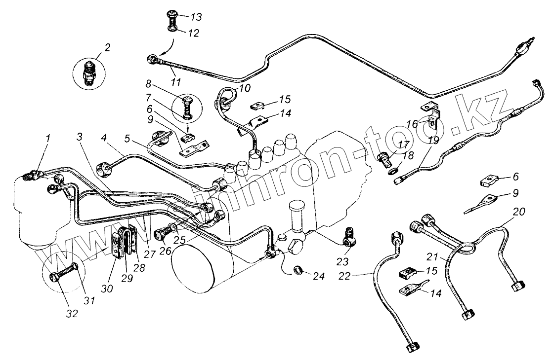 Каталог запасных частей к технике: МАЗ-5429. Топливные трубопроводы двигателя ЯМЗ-236