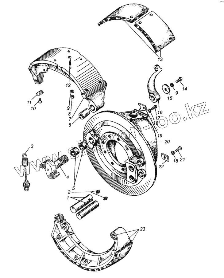Каталог запасных частей к технике: МАЗ-5429. Тормоз рабочий передний МАЗ-509А