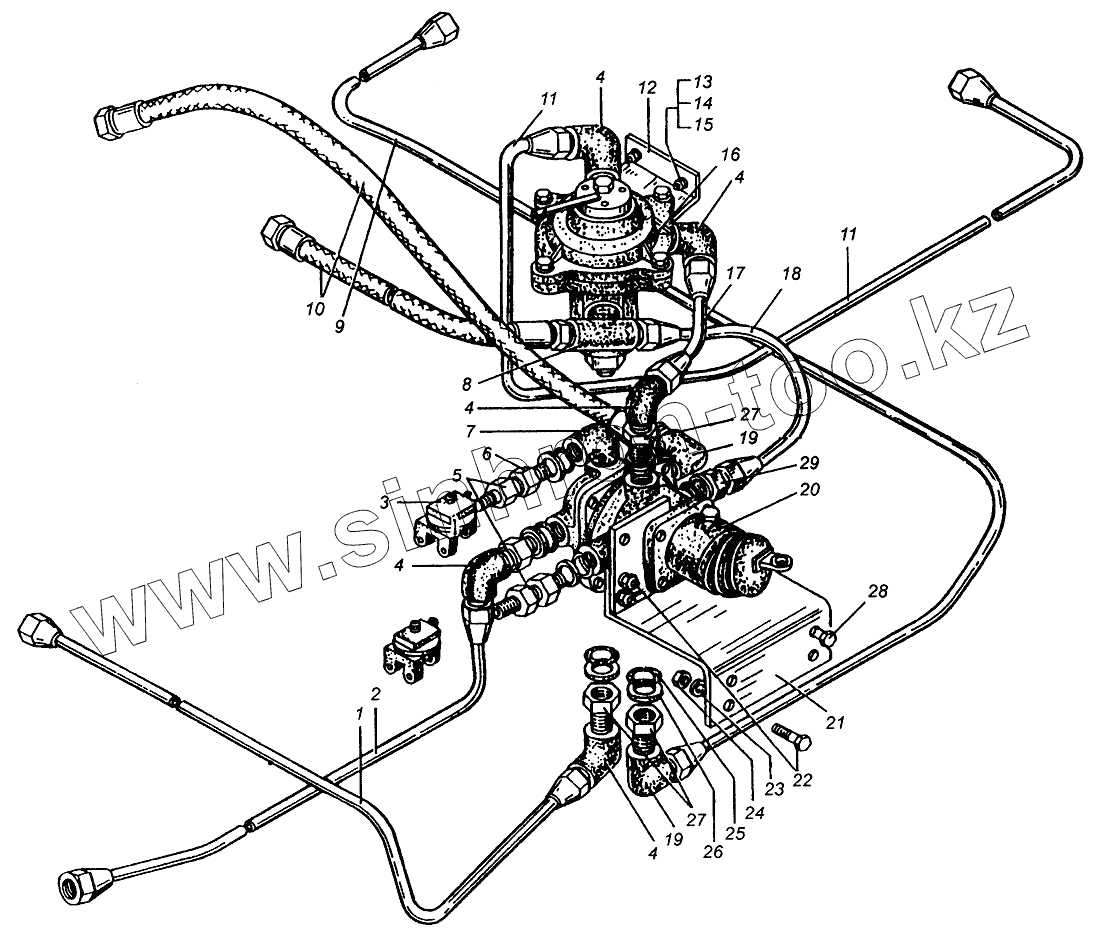 Каталог запасных частей к технике: МАЗ-5429. Трубопроводы к тормозным кранам МАЗ-509А