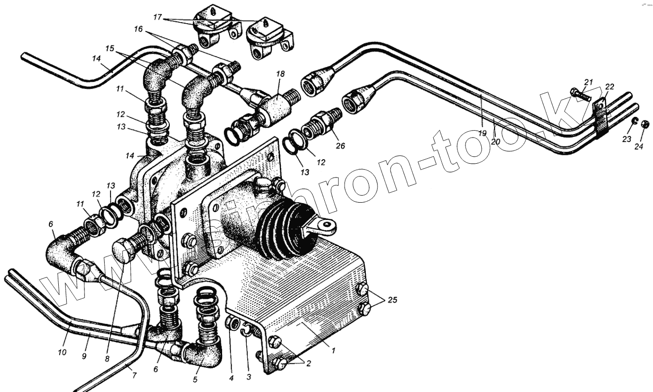 Каталог запасных частей к технике: МАЗ-5429. Трубопроводы к тормозным кранам МАЗ-5549