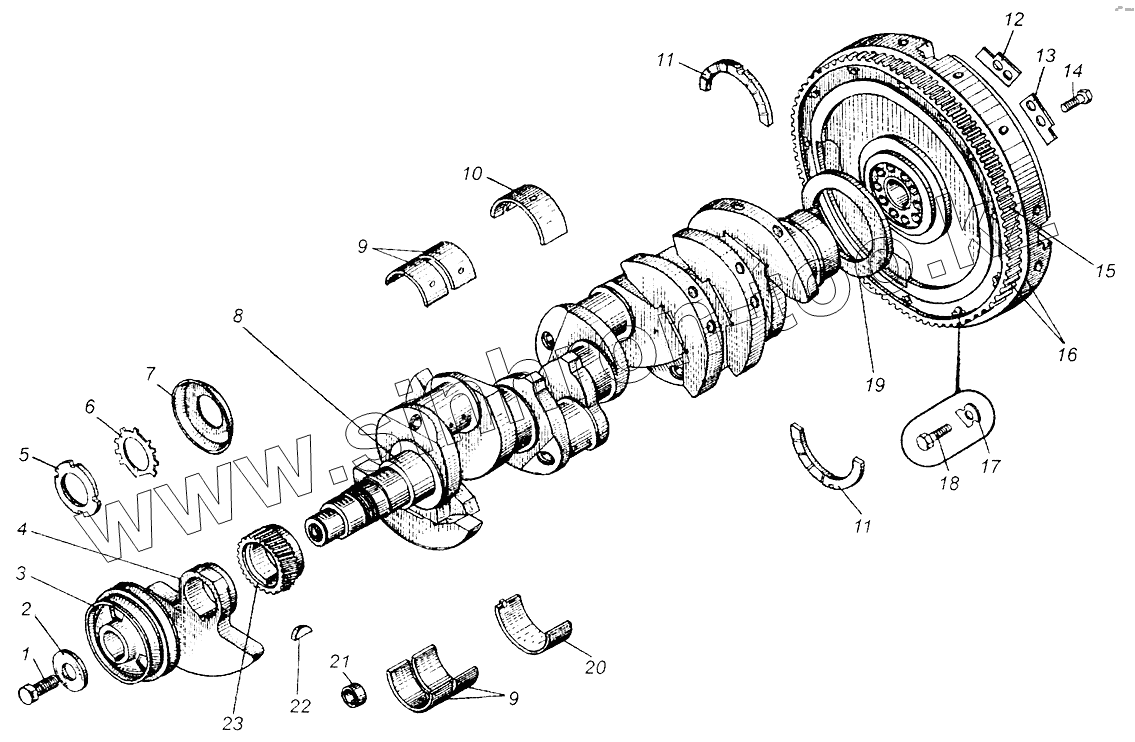 Каталог запасных частей к технике: МАЗ-5429. Вал коленчатый и маховик ЯМЗ-238