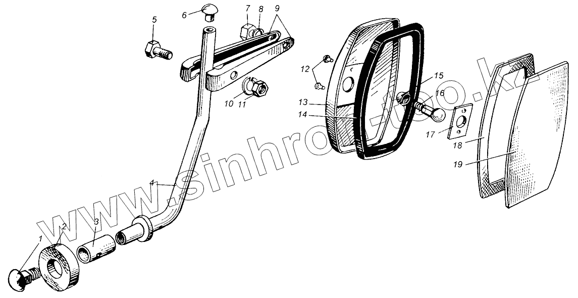 Каталог запасных частей к технике: МАЗ-5429. Зеркало заднего вида