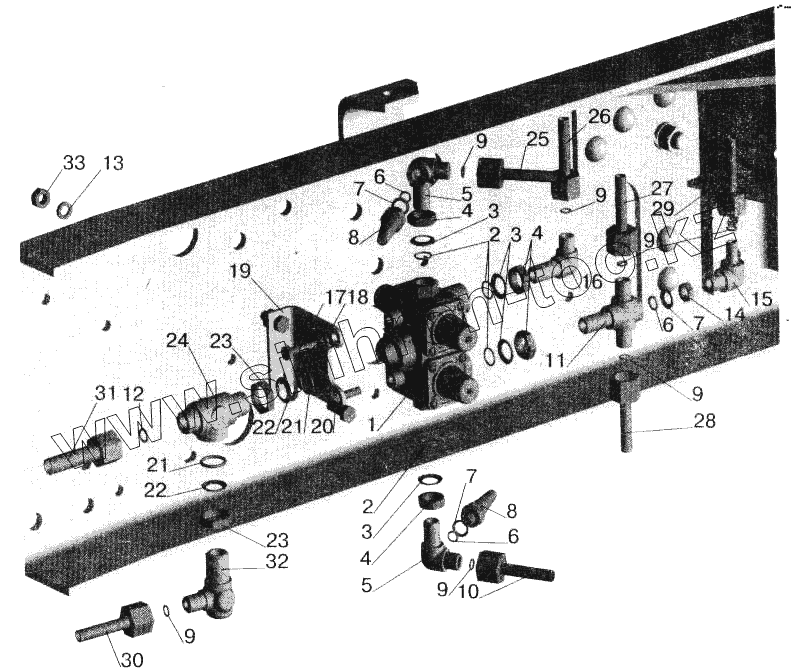 Каталог запасных частей к технике: МАЗ-543202. Крепление четырехконтурного клапана МАЗ-543203, 543202