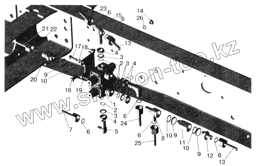 Каталог запасных частей к технике: МАЗ-543202. Крепление четырехконтурного клапана МАЗ-555102