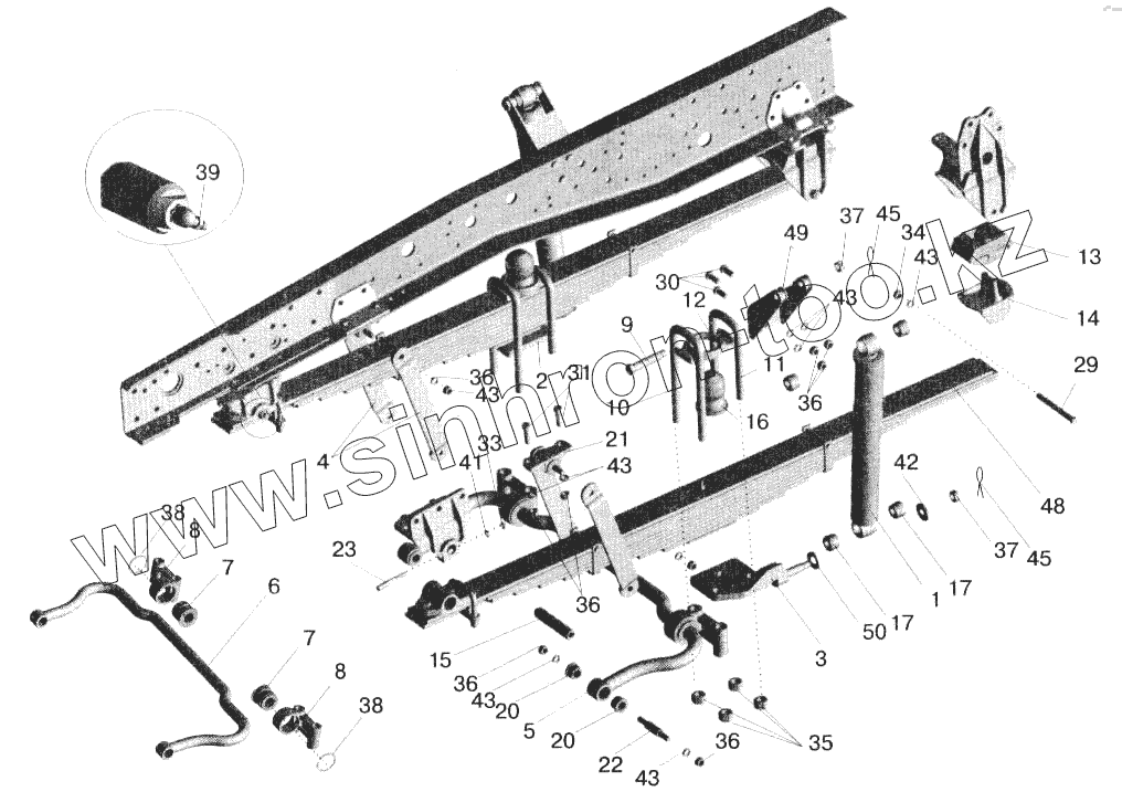 Каталог запасных частей к технике: МАЗ-543202. Подвеска передняя 642208-2900001