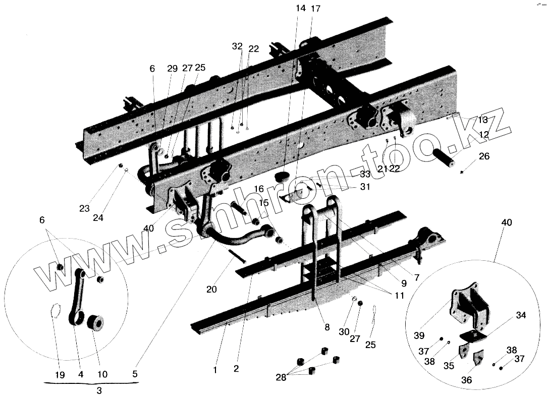 Каталог запасных частей к технике: МАЗ-543202. Подвеска задняя 54321-2900002-10