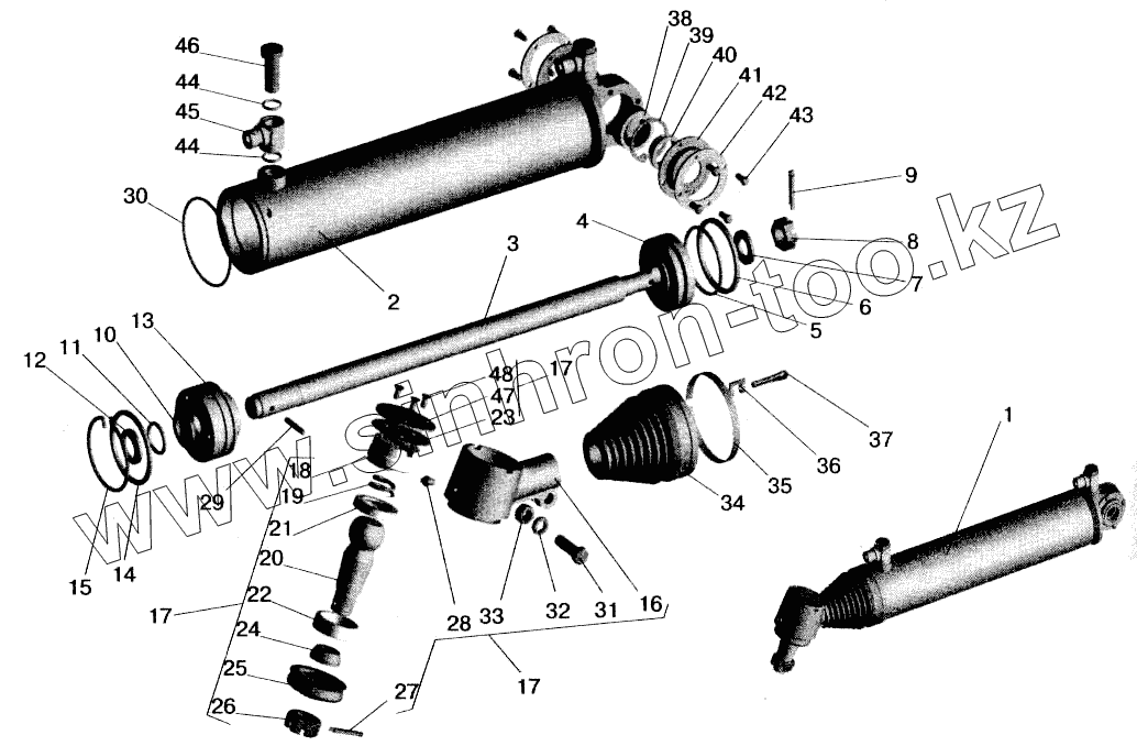 Каталог запасных частей к технике: МАЗ-543202. Силовой цилиндр гидроусилителя рулевого управления