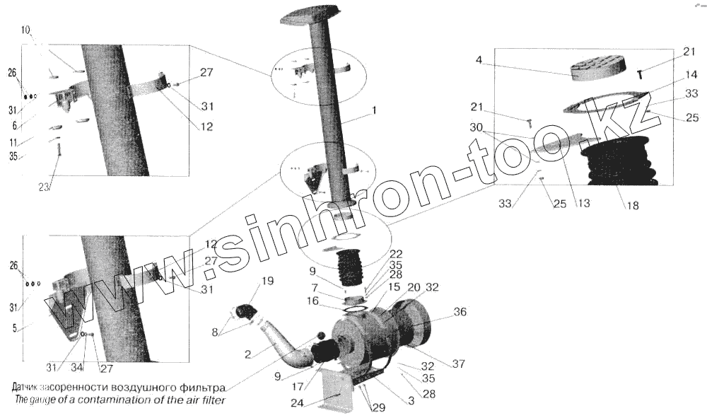 Каталог запасных частей к технике: МАЗ-543202. Система питания воздухом МАЗ-543202, МАЗ-543203