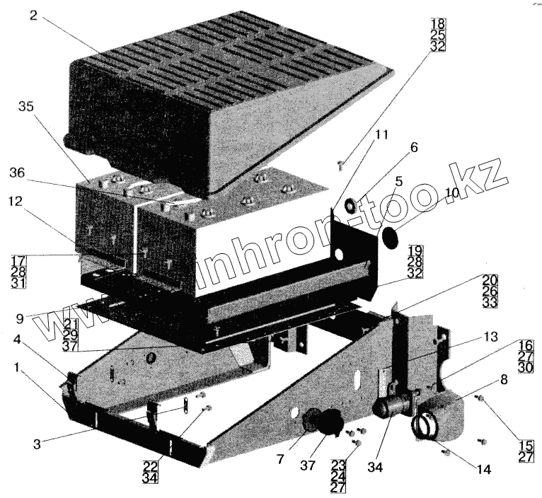 Каталог запасных частей к технике: МАЗ-543202. Установка аккумуляторных батарей