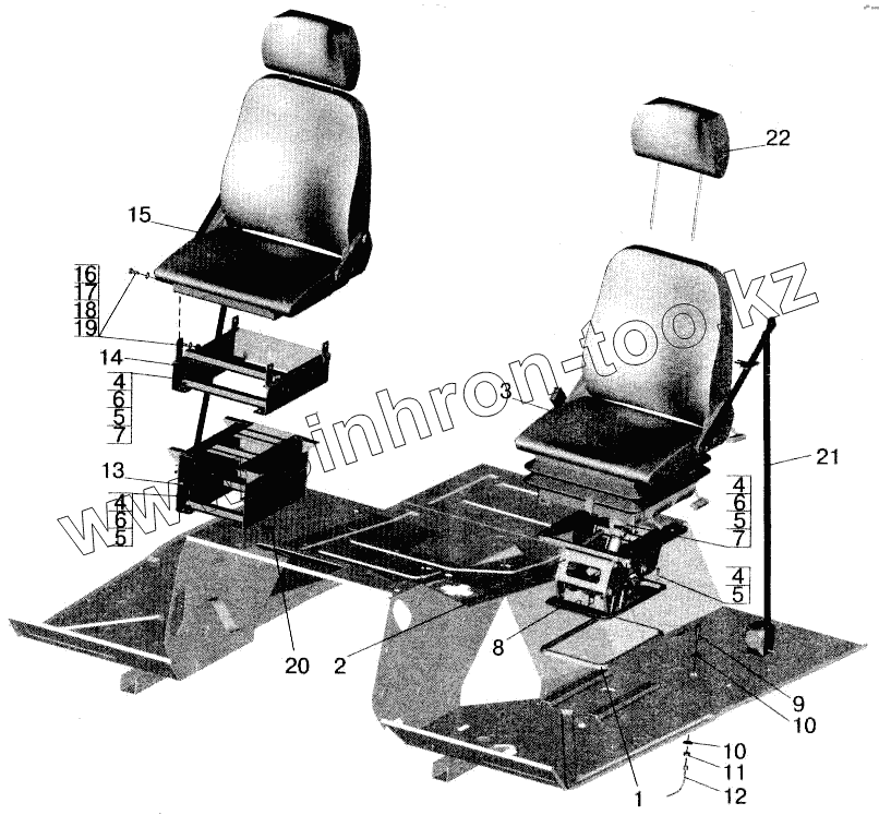 Каталог запасных частей к технике: МАЗ-543202. Установка и пневмопитание сидений 5551-6800006-040