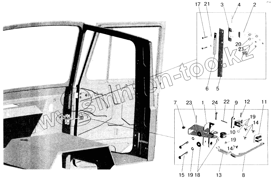 Каталог запасных частей к технике: МАЗ-543202. Установка ограничителя и петель двери