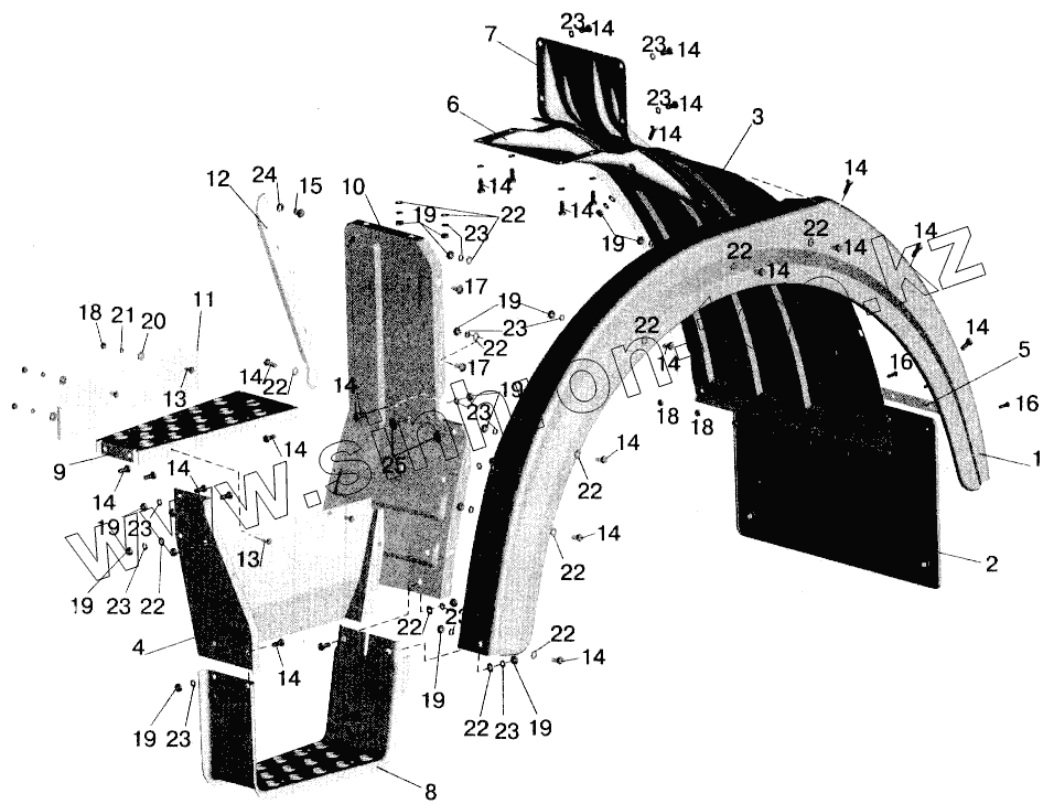 Каталог запасных частей к технике: МАЗ-543202. Установка оперения на малую кабину