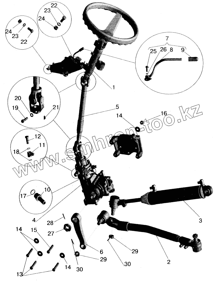 Каталог запасных частей к технике: МАЗ-543202. Установка рулевой колонки и рулевого механизма
