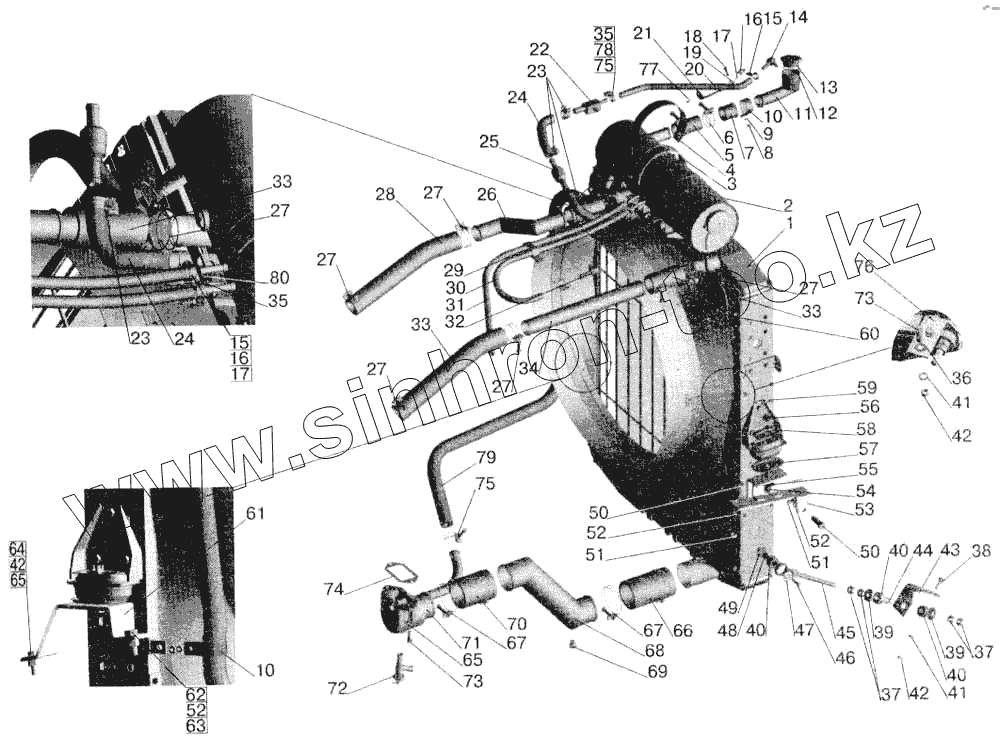 Каталог запасных частей к технике: МАЗ-543202. Установка системы охлаждения МАЗ-642208, 543208