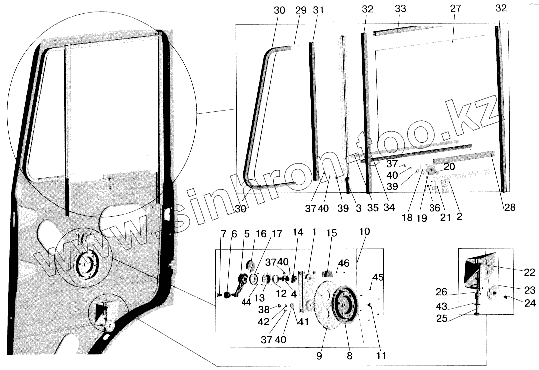 Каталог запасных частей к технике: МАЗ-543202. Установка стеклоподъемника и ручки стеклоподъемника