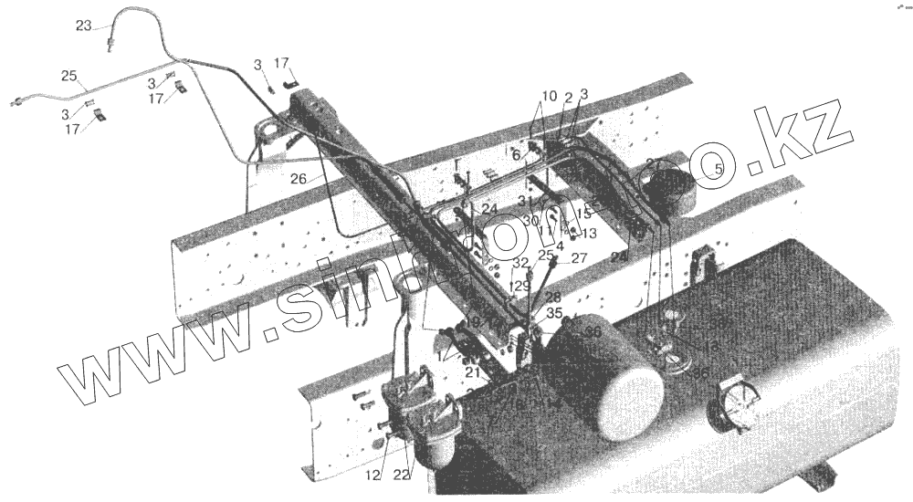 Каталог запасных частей к технике: МАЗ-543202. Установка топливопроводов МАЗ-543208 (с подогревателем)