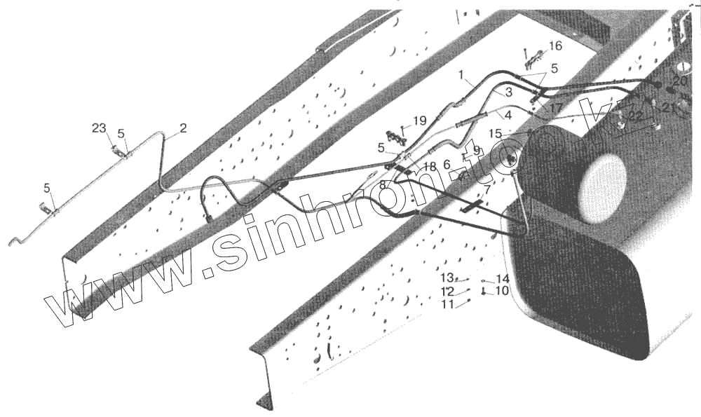 Установка топливопроводов МАЗ-551605 (с подогревателем)