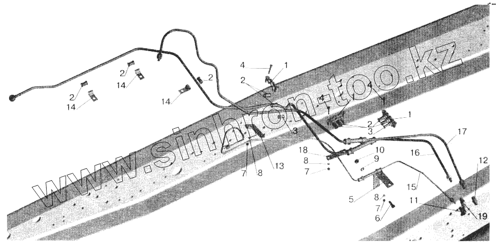 Каталог запасных частей к технике: МАЗ-543202. Установка топливопроводов МАЗ-555102(без подогревателя)