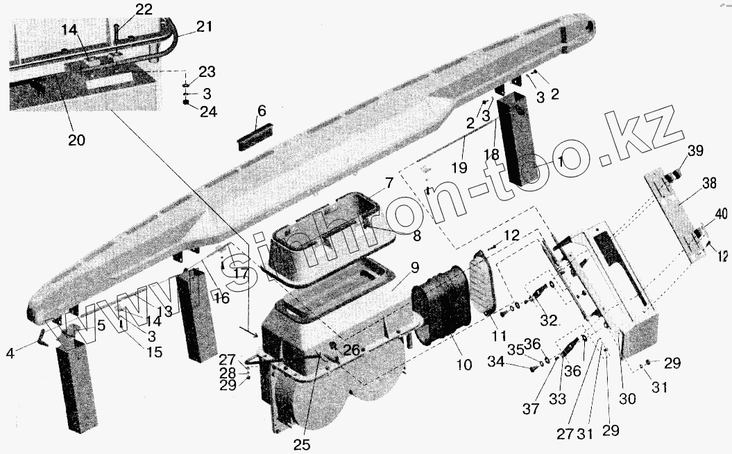 Каталог запасных частей к технике: МАЗ-543202. Установка воздушных заслонок и отопителя кабины