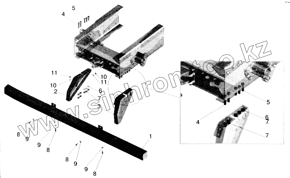 Каталог запасных частей к технике: МАЗ-543202. Установка заднего бампера