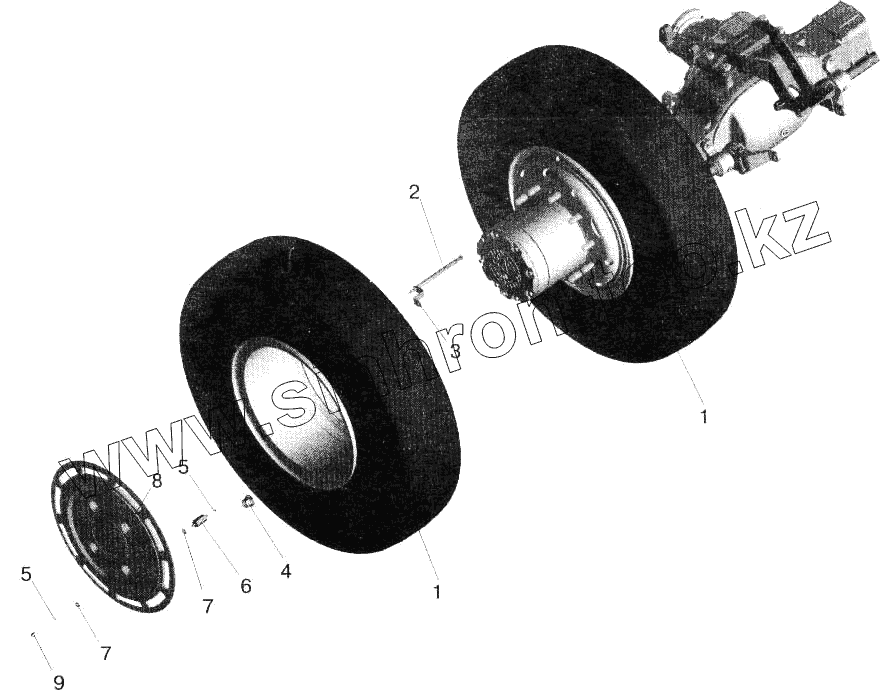 Каталог запасных частей к технике: МАЗ-543202. Установка задних колес