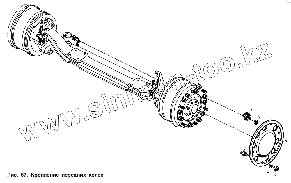 Каталог запасных частей к технике: МАЗ-54321. Крепление передних колес