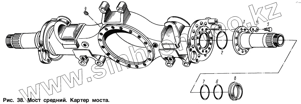 Каталог запасных частей к технике: МАЗ-54321. Мост средний. Картер моста