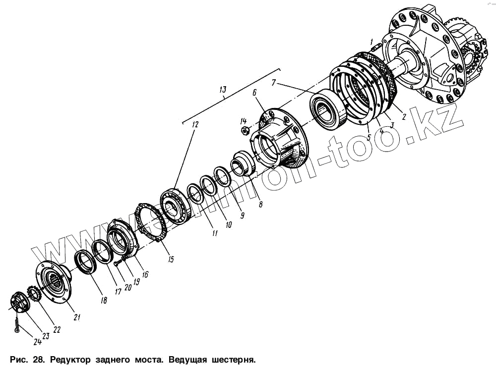 Каталог запасных частей к технике: МАЗ-54321. Редуктор заднего моста. Ведущая шестерня