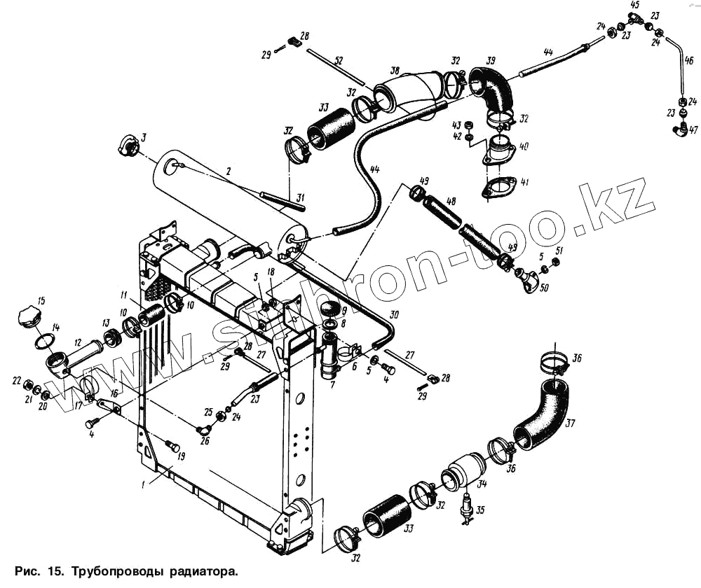 Каталог запасных частей к технике: МАЗ-54321. Трубопроводы радиатора