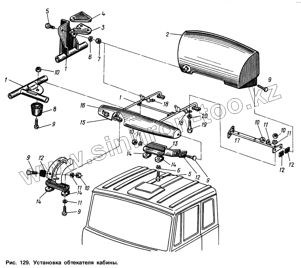 Каталог запасных частей к технике: МАЗ-54321. Установка обтекателя кабины