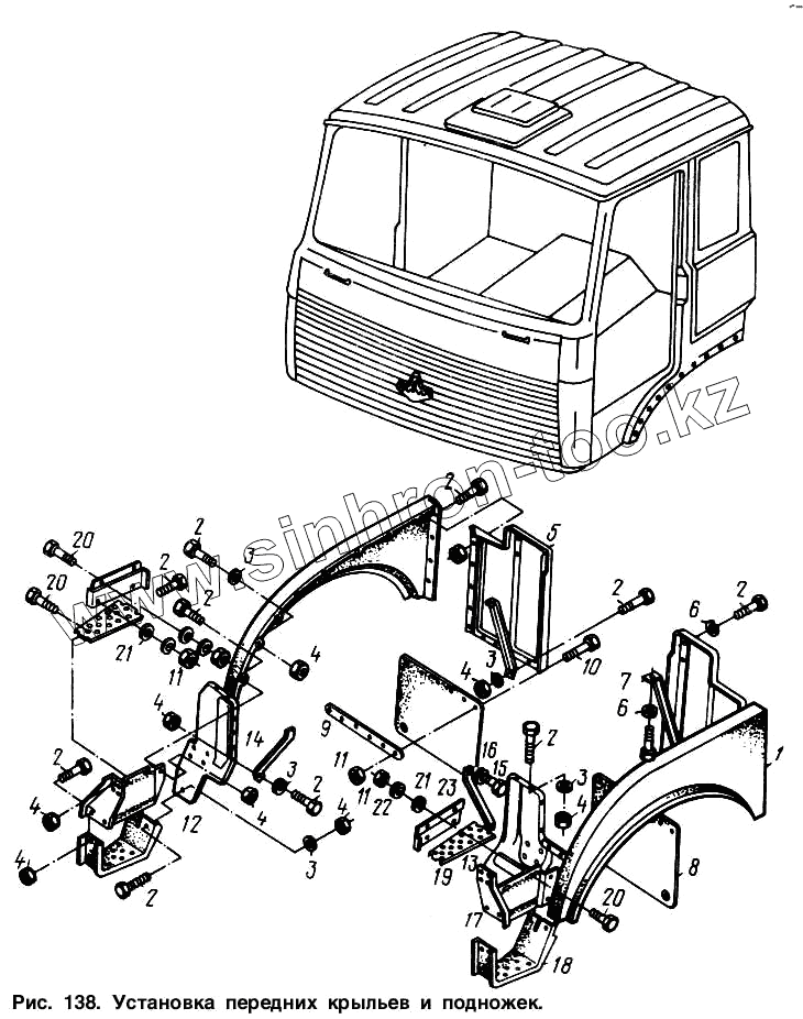 Каталог запасных частей к технике: МАЗ-54321. Установка передних крыльев и подножек