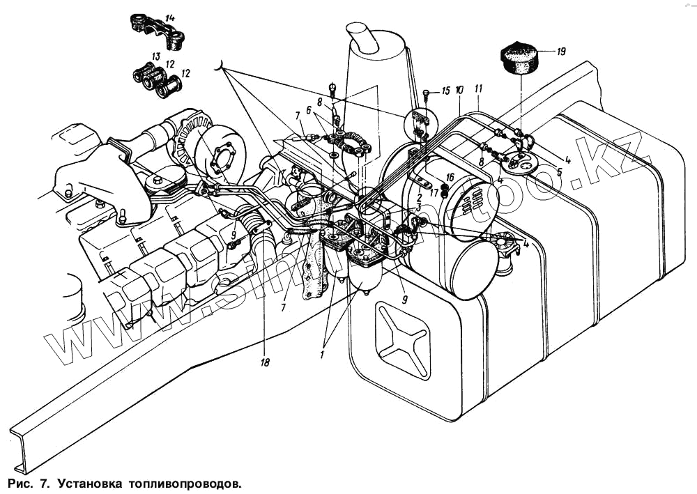 Каталог запасных частей к технике: МАЗ-54321. Установка топливопроводов