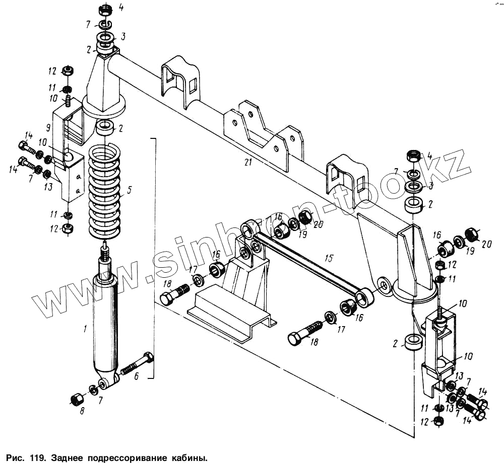 Каталог запасных частей к технике: МАЗ-54321. Заднее подрессоривание кабины