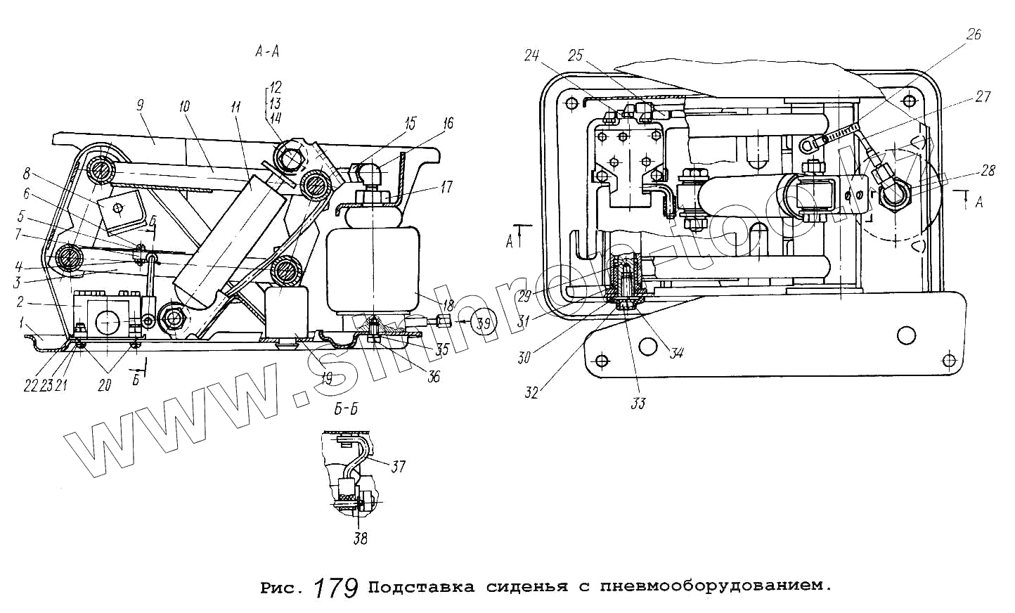 Каталог запасных частей к технике: МАЗ-54323. Подставка сиденья с пневмооборудованием