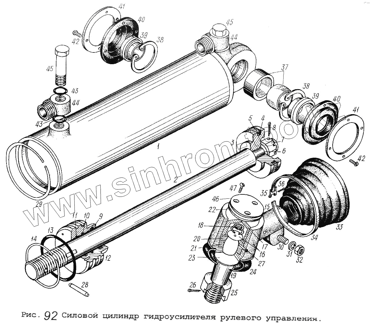 Каталог запасных частей к технике: МАЗ-54323. Силовой цилиндр гидроусилителя рулевого управления